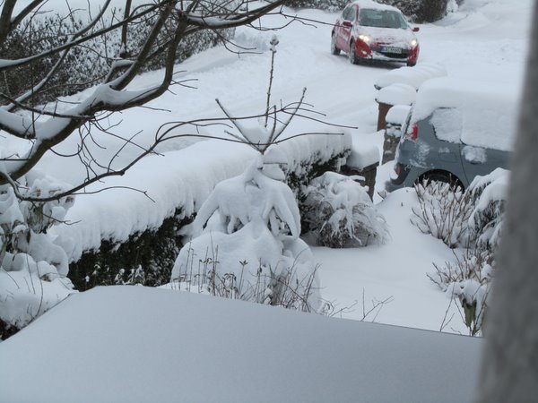 I now summarily transferred to my study room, where exactly is facing the wide panoramic window, the bird house. This is always quite a spectacle when the tits fight over food or the sparrow is coming, and driven away. Real nice if it so flutters and lives in the garden!