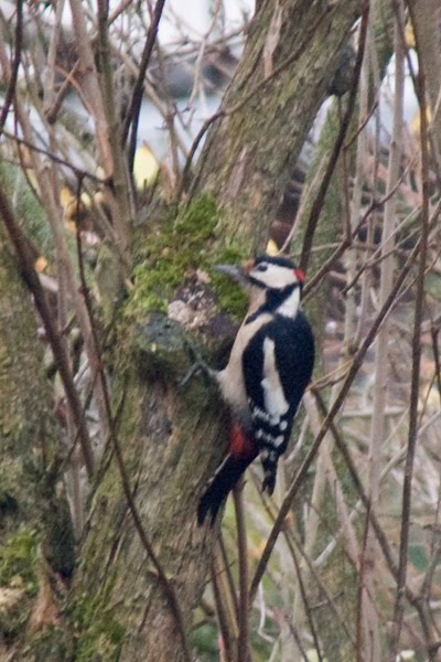 Sorry, even a super lousy picture. Here is today's net even get light and the woodpecker was super quick - too quick for the camera with so far and these light conditions.